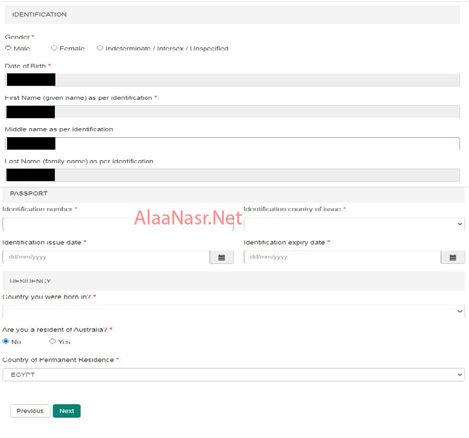 هتملى بيانات الباسبور بتاعك رقمه و بلده و تاريخ بدايته و نهايته ، و البلد اللى اتولدت فيها و البلد اللى عايش فيها