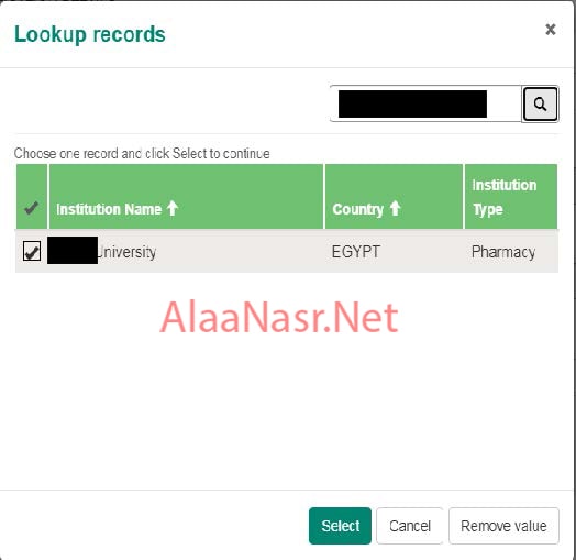هتكتب اول حروف من اسم جامعتك هتظهرلك ، تختارها و تضغط على