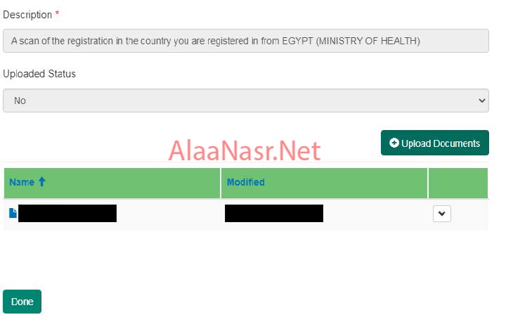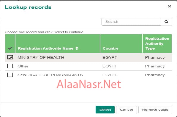 هتفتح صفحة تدور على وزارة الصحة و تختارها ، هيرجعك للصفحة اللى فاتت تانى تكتب فيها تاريخ بداية ترخيص مزاولة المهنة (التاريخين زى بعض فى الفراغ رقم 3 و 4)