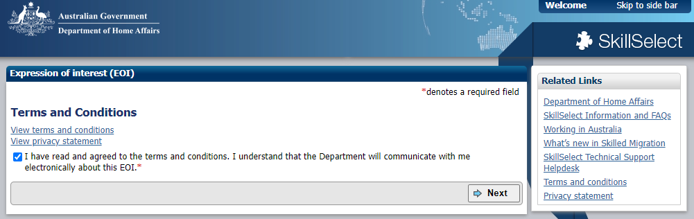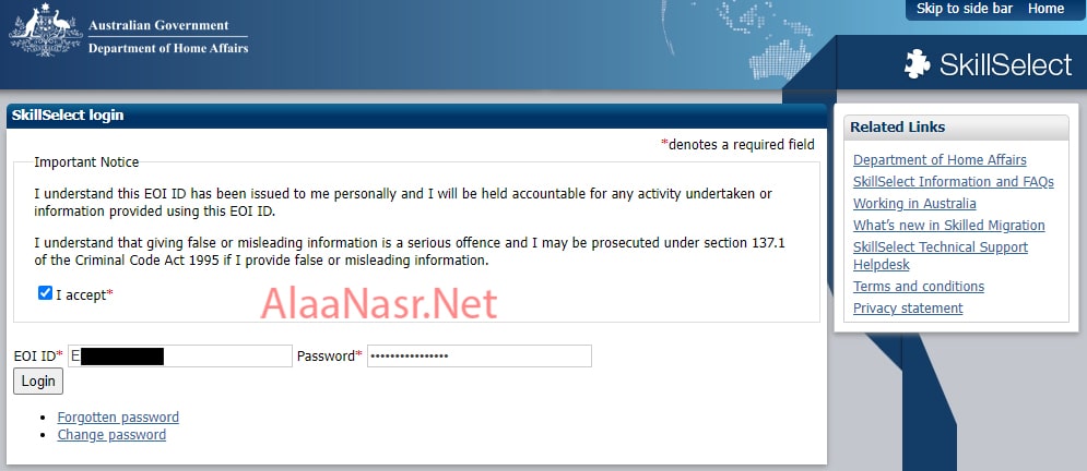 EOI number, Email, Password, State