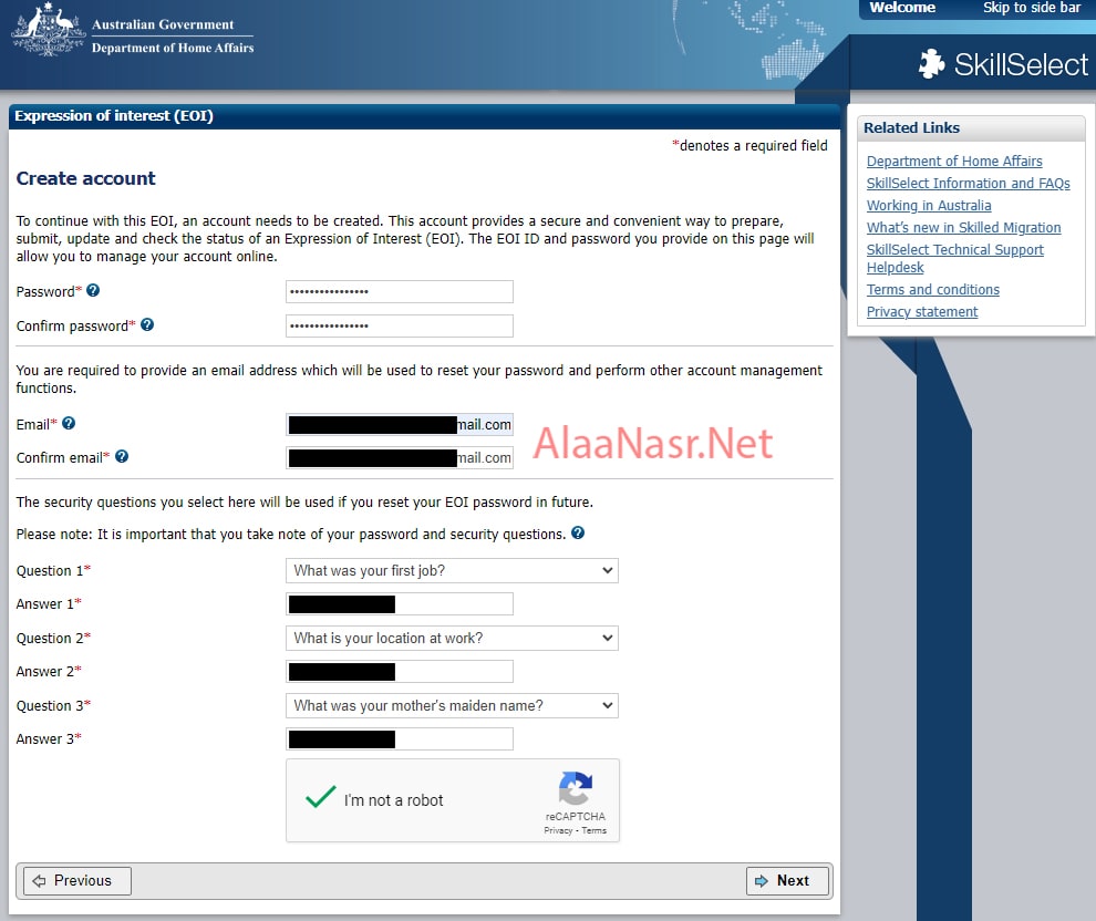 و تحتها اسئلة اختار اى حاجة منها و جاوبها ، و احتفظ بيها لأنها مهمة فى حالة لو نسيت الباسبورد ، اعمل