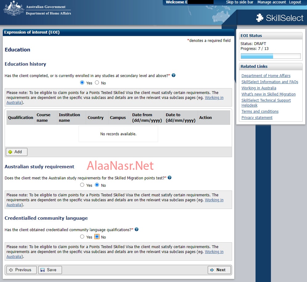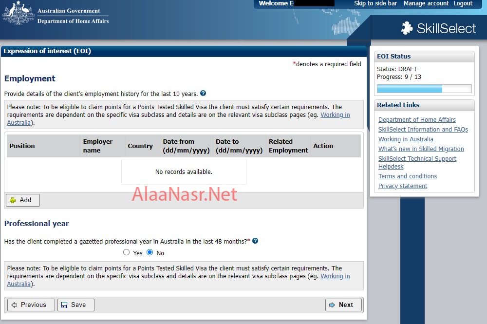 السؤال التانى فى الصفحة ، هل اشتغلت سنة فى استراليا ، اغلبنا لأ طبعا ، فتختار