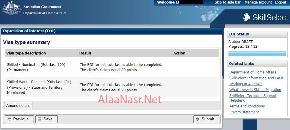هيقولك النقاط اللى حصلت عليها لفيزا 190 و فيزا 491 ، او نوع واحد منهم لو مقدم على نوع واحد فقط ، و دا طبعا حسب تعليمات الولاية اللى مقدملها