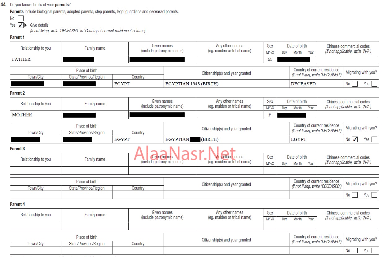 الصفحة رقم 14 ، بيانات الأب و الأم ، لو حد متوفى بتكتب