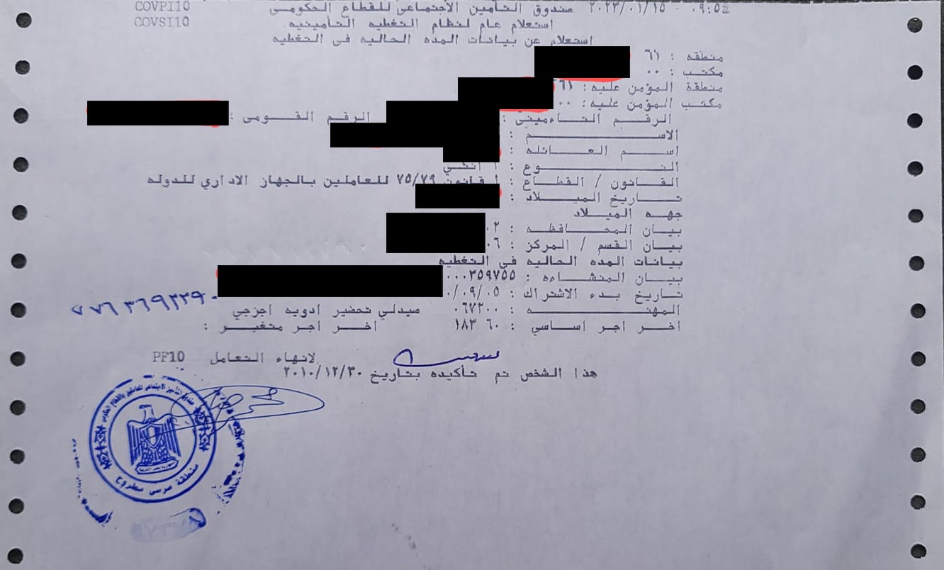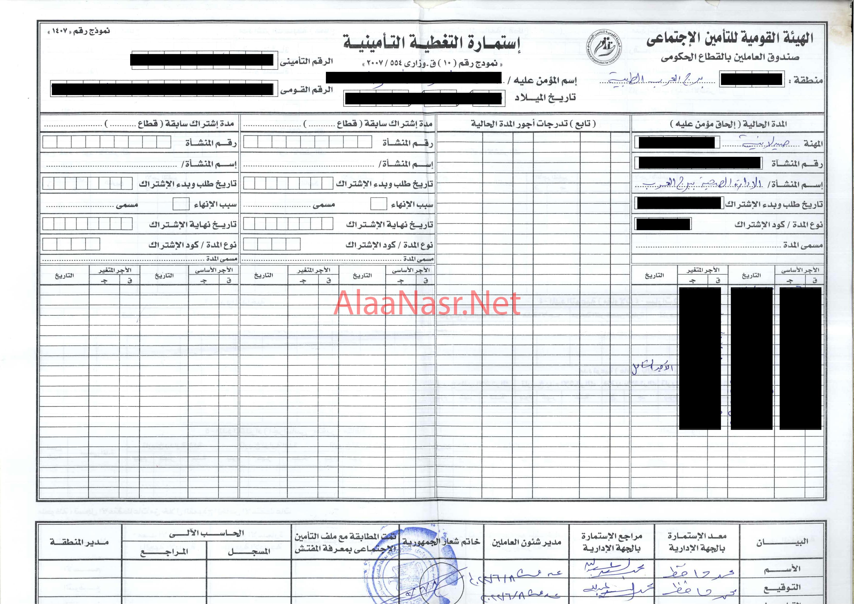 استمارة تغطية تأمينية من التأمينات أو الادارة الصحية