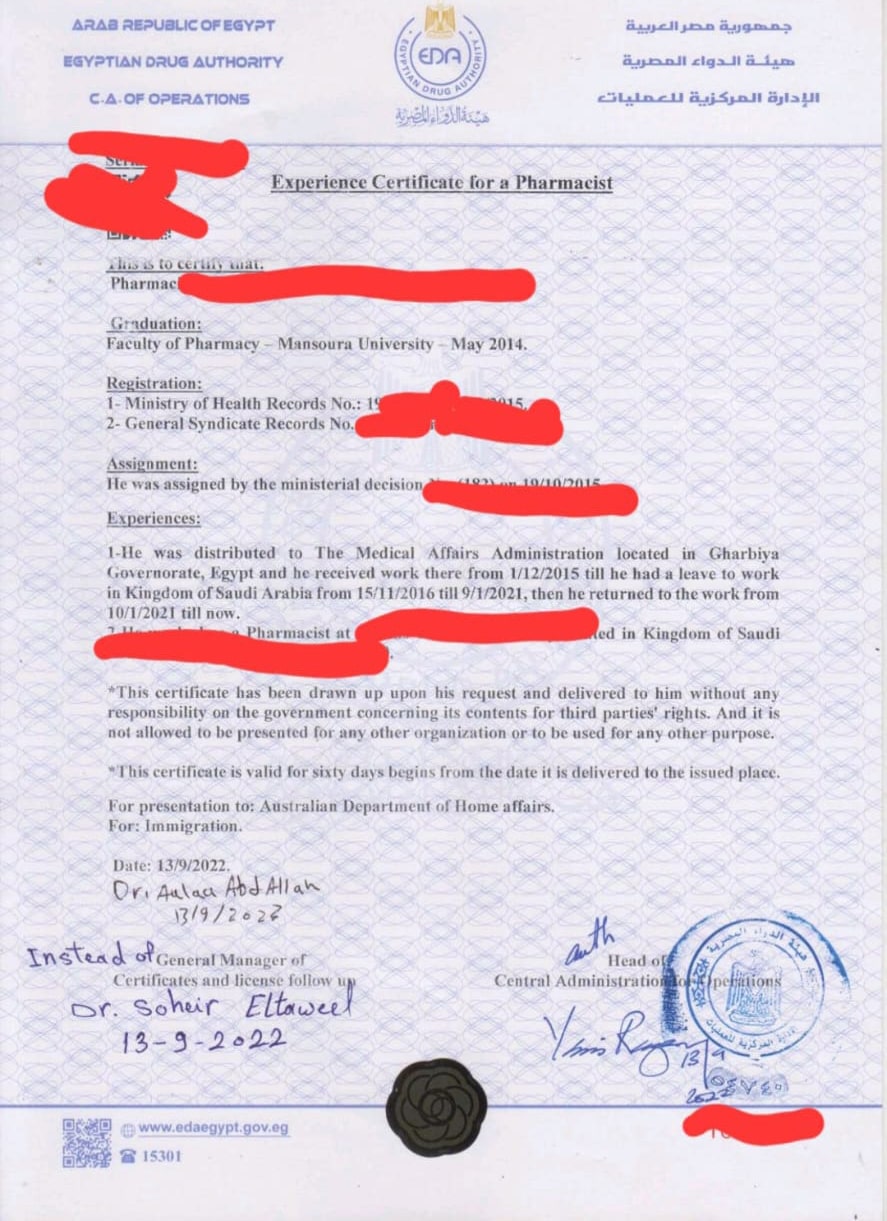 و لو اشتغلت فترة برا مصر بتثبتها فى شهادة هيئة الدواء